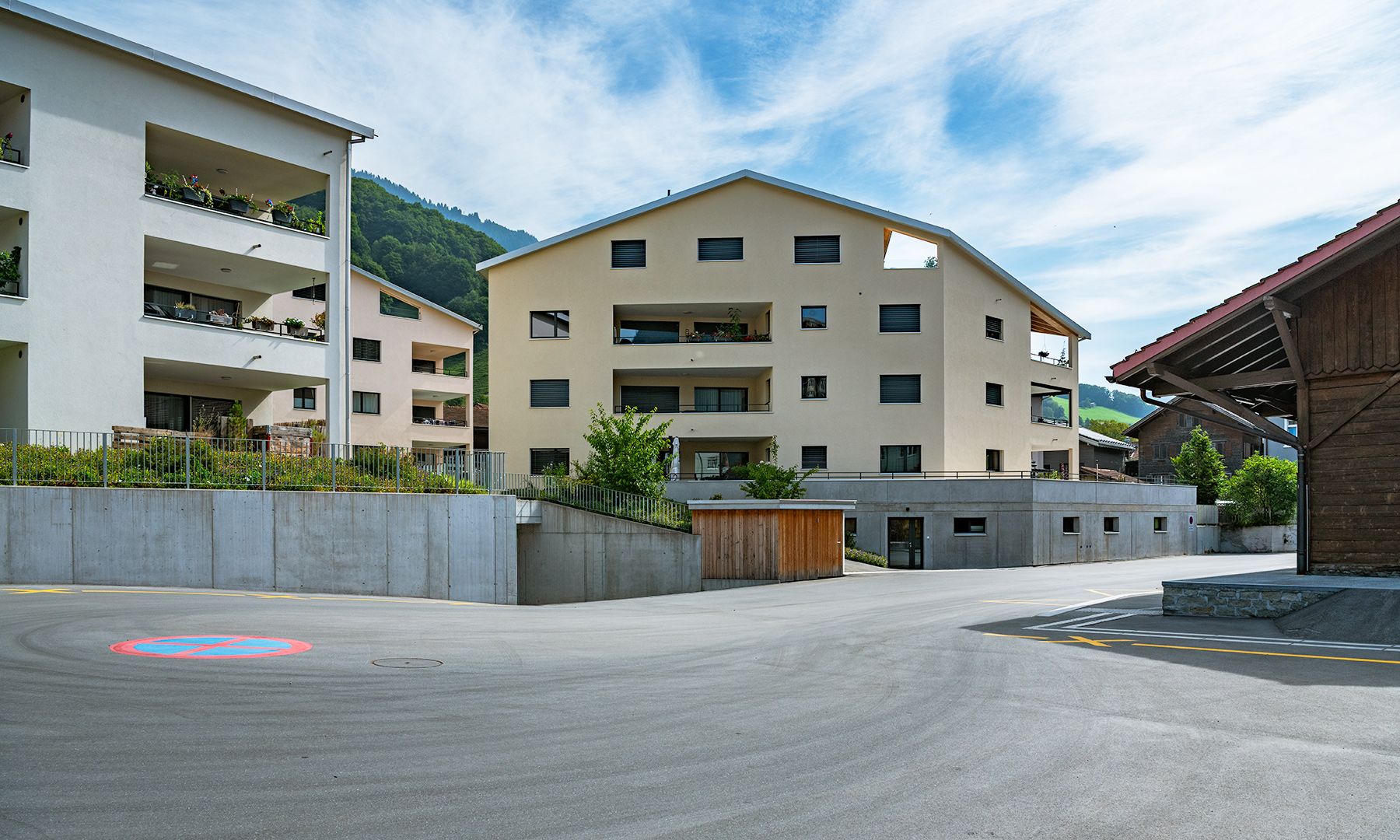 4 Zimmer Wohnungen mit Aussenparkplätzen ohne Überdachung.